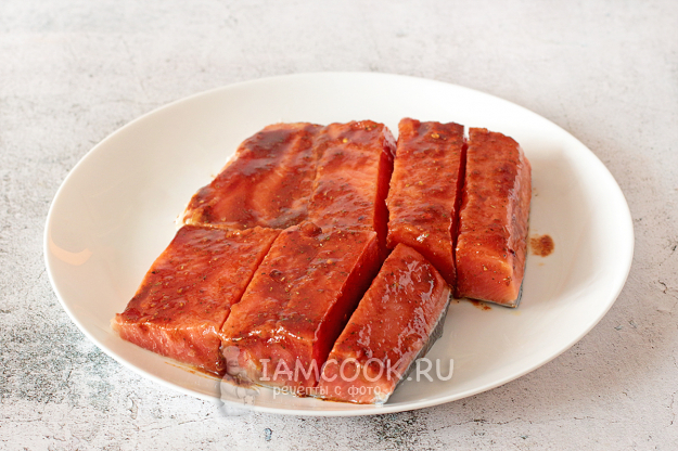 Смажьте рыбу маринадом со всех сторон и оставьте на 20-30 минут пропитаться и промариноваться.