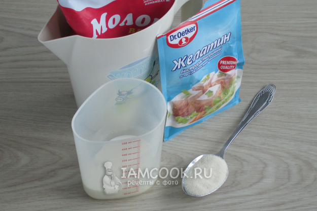 Влейте молоко с желатином.