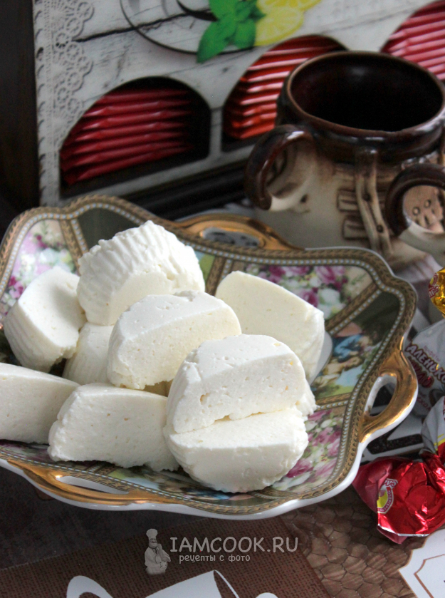 Для зефира из творога в домашних условиях подготовьте ингредиенты по списку к рецепту.