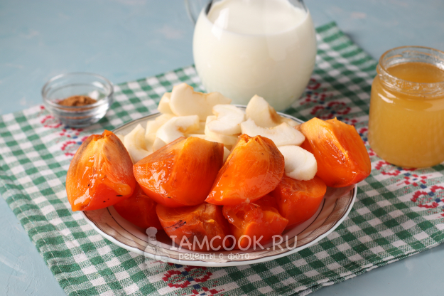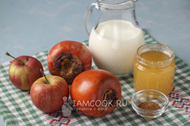 Для приготовления смузи с хурмой, яблоками и пряностями подготовить из списка необходимые ингредиенты.