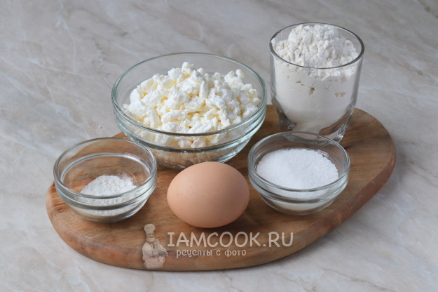 Для приготовления творожных пончиков в духовке подготовьте продукты по списку к рецепту.