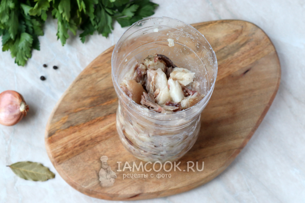 Отправьте зельц из рульки в бутылке в холодильник на 5-6 часов (лучше на ночь) до полного застывания.