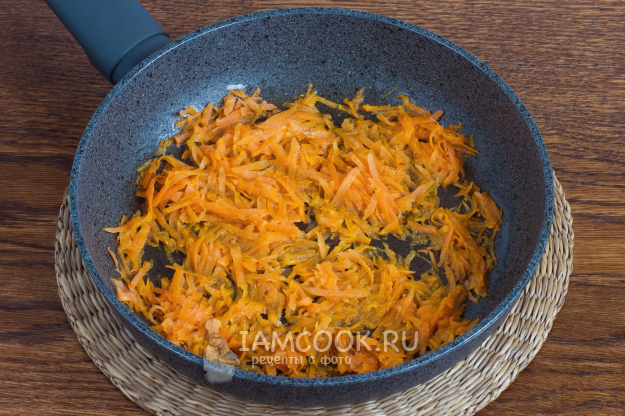 Морковь промойте и почистите. Натрите на крупной терке и обжарьте на 1 ст.л. растительного масла.