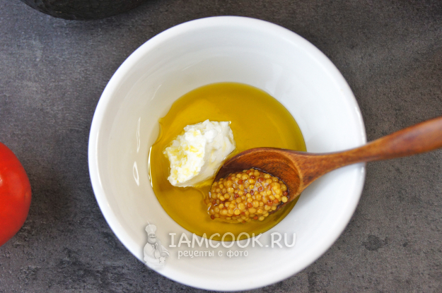 Из оливкового масла, горчицы и сливочного сыра сделайте соус. Можно добавить сок лимона.