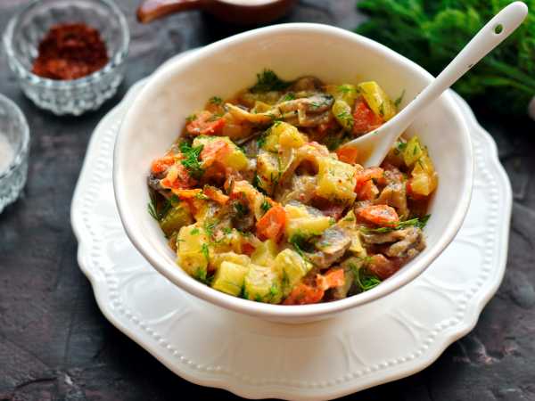 Ну вот, самое вкусное блюдо, кабачки тушеные с грибами, готово!