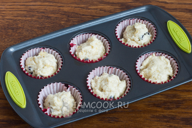 В форму для выпечки маффинов выложите бумажные формочки, наполните их на 2/3 тестом и поставьте в разогретую до 180 градусов духовку на 20-25 минут.