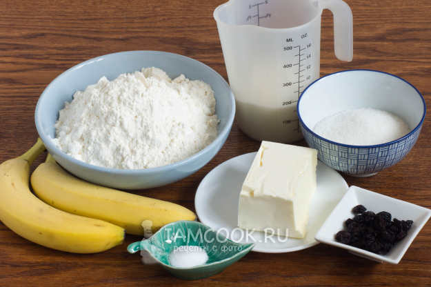 Подготовьте необходимые продукты для приготовления банановых маффинов на кефире.