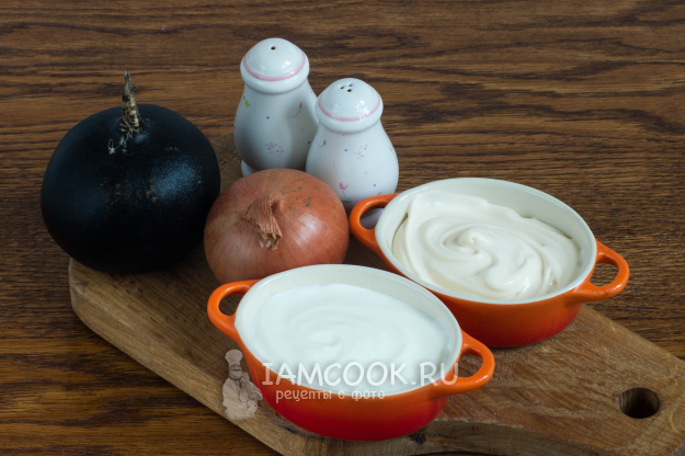 Подготовьте продукты, необходимые для приготовления салата из редьки с майонезом.
