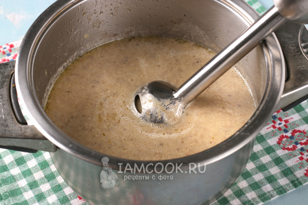 Слить из супа немного бульона, пюрировать погружным блендером. Затем слитый бульон добавить до нужной густоты.