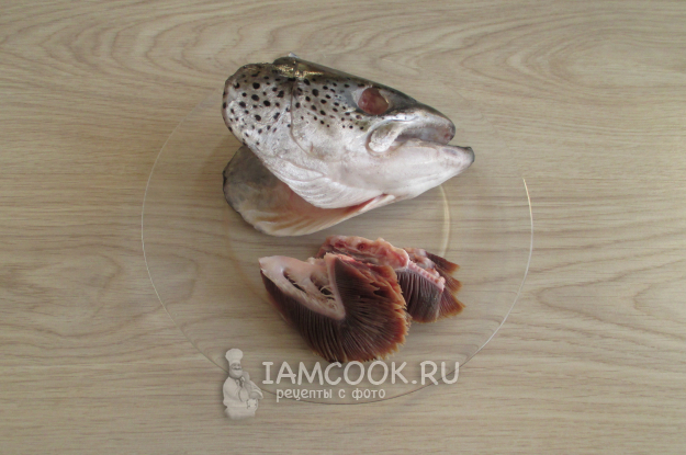 Из головы лосося необходимо удалить (выломать и отрезать) жабры. Иногда рекомендуют и рыбьи глаза удалить, но я ухудшения в бульоне с ними не улавливаю...