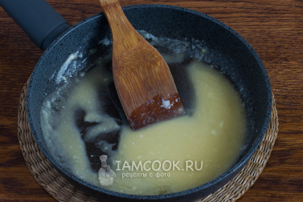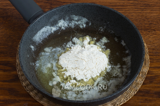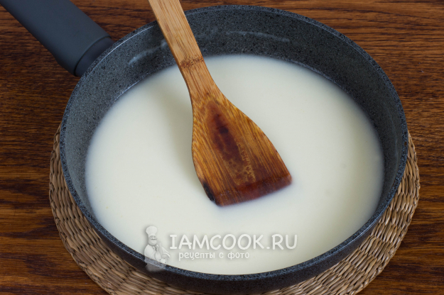 Постепенно вливайте воду комнатной температуры. Постоянно помешивайте соус.
