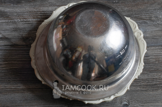 Прижимаем к миске сервировочное блюдо и переворачиваем.