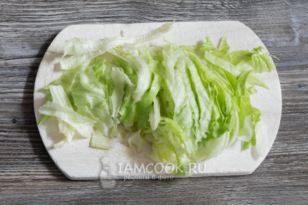 Салат режем полосками.