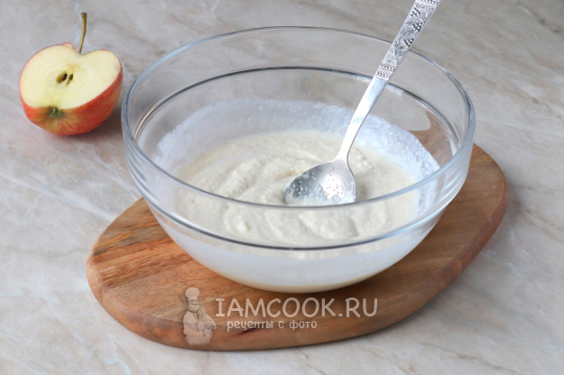 Снова перемешайте и добавьте в тесто нарезанные небольшими кубиками яблоки (предварительно их нужно очистить и удалить семенную коробочку).