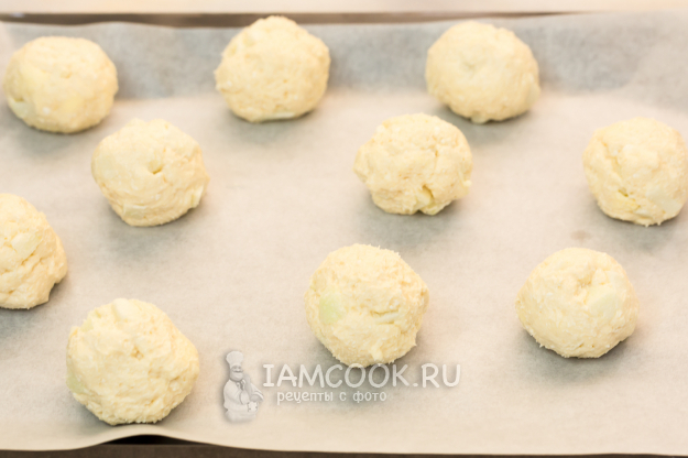 Из теста влажными руками сформируйте булочки, выложите на противень.