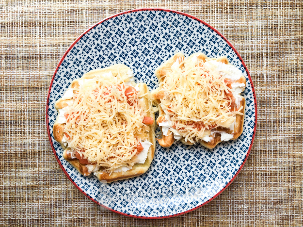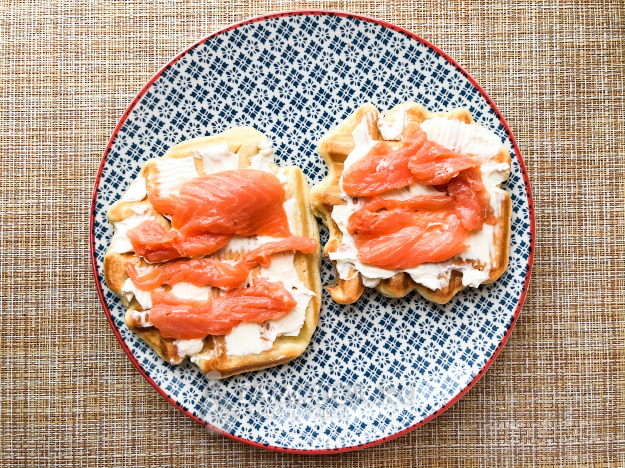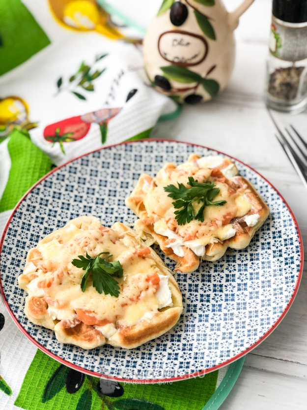 Вафли со слабосоленой форелью и сыром готовы. Приятного аппетита.