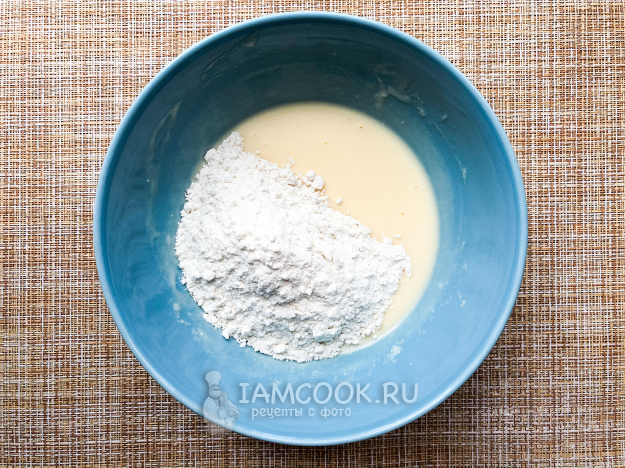Добавьте муку и снова тщательно перемешайте, чтобы не было комочков.