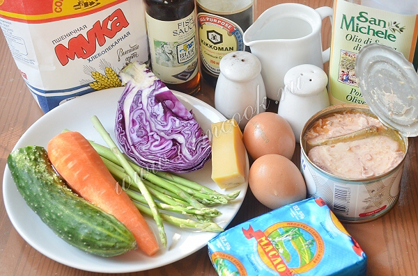 В моем доме всегда есть запас консервированного тунца. С ним получаются очень вкусные салаты, с ним можно испечь пирог, и, как оказалось, с тунцом получается вкуснейший омлет! Сегодня я расскажу вам, как приготовить овощной салат с омлетом из тунца. По своему вкусу и желанию, вы можете заменить некоторые ингредиенты салата на другие овощи, у меня было следующим образом:
