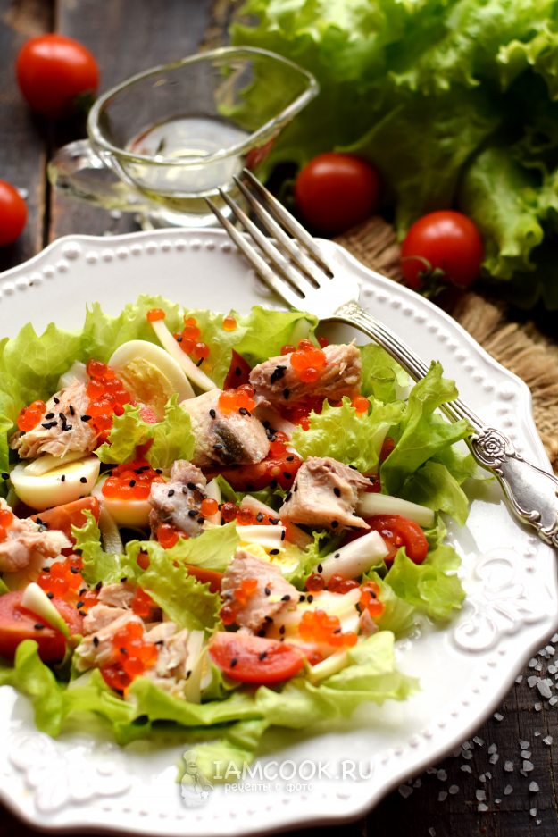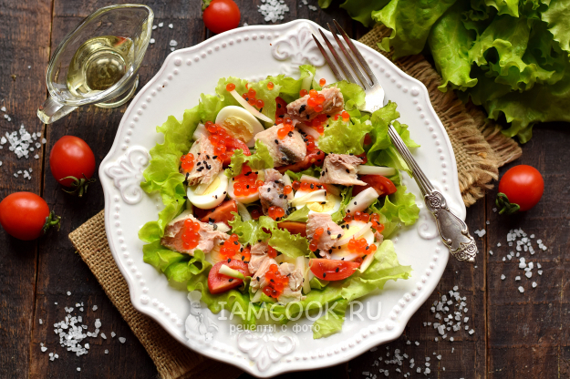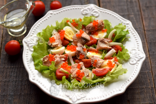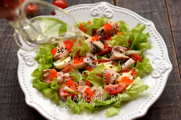 Сверху все компоненты покройте красной икрой.