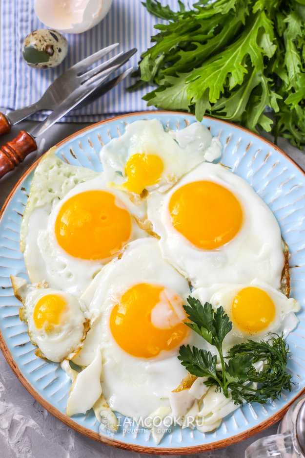 Примерное время жарки куриных яиц - 4-6 минут, в зависимости от желаемой степени готовности желтка, а перепелиных - 1-3 минуты. Чтобы не получить желтки перепелиных яиц плотными, а куриных - жидкими, лучше всего сначала разбивать на сковороду крупные яйца, спустя 3-4 минуты - мелкие.