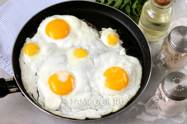 Сковороду с маслом прогревайте заранее, а затем нагрев уменьшайте, иначе на максимальном нагреве низ яичницы подгорит, а сверху белок останется жидковатым. И солите блюдо только при подаче к столу, равно как и перчите, так как соль, попадая на желток, оставляет на нем белые разводы, и из-за этого блюдо будет непривлекательно выглядеть.