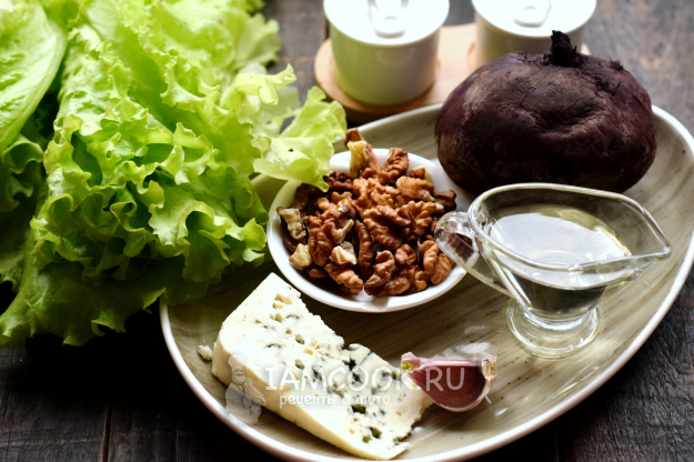 Подготовьте продукты для салата со свеклой и сыром Дор Блю.