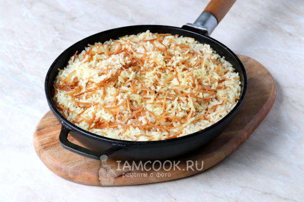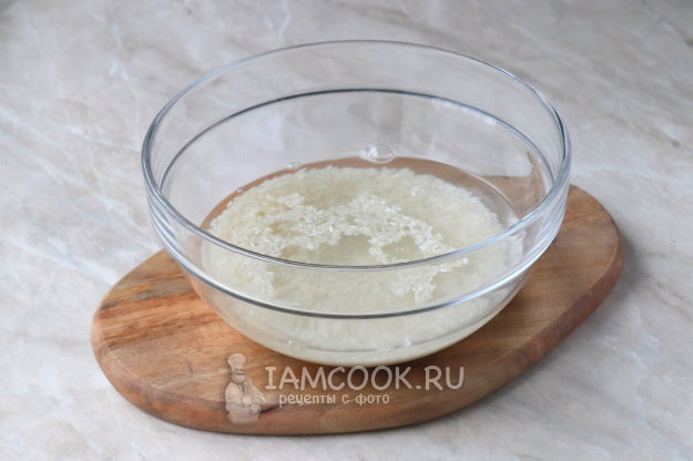 Первым делом тщательно промойте рис до чистой воды, меняя её 3-4 раза, после чего откиньте рис на дуршлаг.