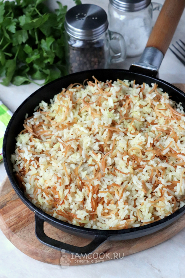 Для приготовления риса по-турецки с вермишелью на сковороде понадобятся следующие ингредиенты.