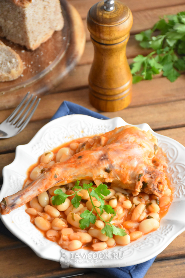 Кролик с фасолью в томатном соусе готов. Приятного аппетита!