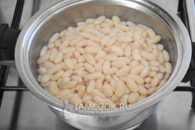 Фасоль опустить в кипящую воду и варить 15 минут. Слить воду.