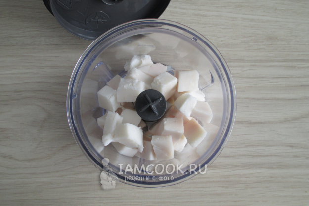 Сало нужно нарезать на кусочки. Очень удобно, когда заготовка сала не до конца размороженная, потому что их даже удобнее измельчать. Большое количество сала лучше прокрутить в мясорубке, рекомендуется даже – два раза. В случае, когда сала довольно-таки небольшое количество, воспользуйтесь просто блендером.