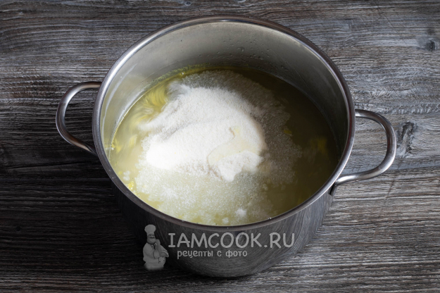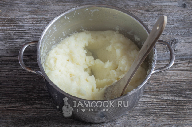 Снимаем с плиты поленту (она должна быть еще полужидкой), солим, хорошо промешиваем и условно делим на 2 части.