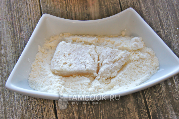 Каждый кусочек рыбы обваляйте в муке.