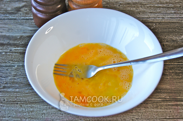 Вбейте яйцо в миску и взболтайте при помощи вилки в однородную массу.