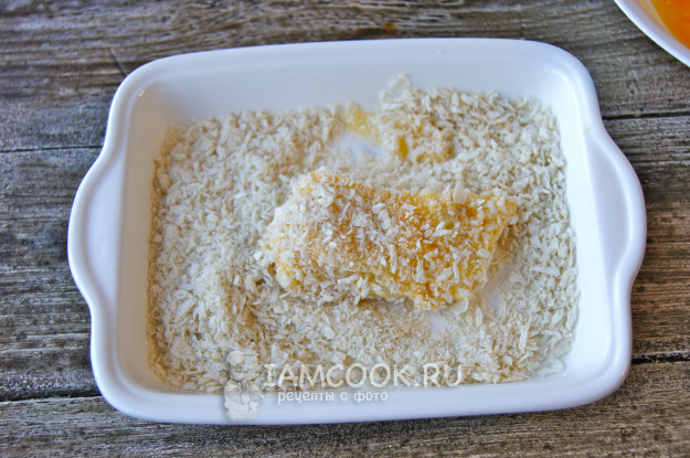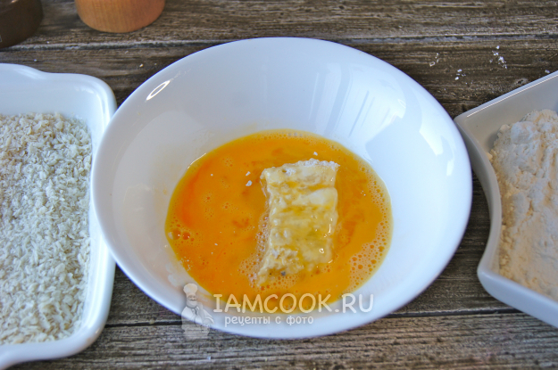 Затем обмакните в яйцо.
