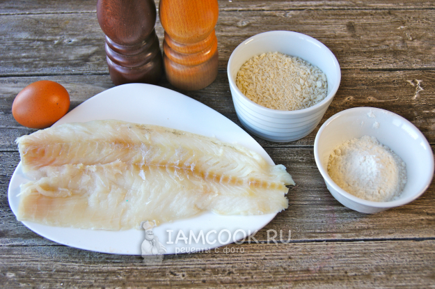 Подготовьте все необходимые продукты для приготовления филе трески в панировке на сковороде.