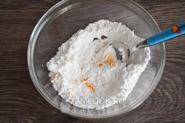 Сахарную пудру перемешать с куркумой и просеять в миску.