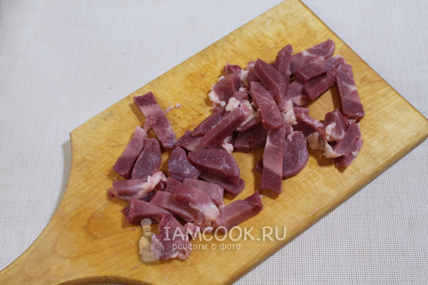 Гречку промойте и залейте водой, пока будете готовить заправку. Филе индейки нарежьте брусочками среднего размера.
