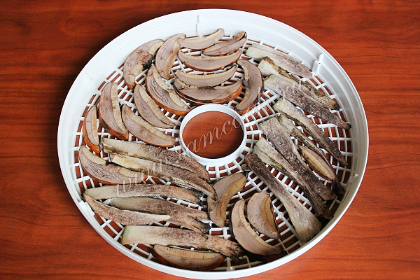Режим сушки в электросушилке (в потоке теплого воздуха) может быть как непрерывным, так и цикличным. Мне больше нравится цикличный. Включите сушилку на 2-3 часа, затем выключите и оставьте грибы до состояния, когда они снова повлажнеют.
