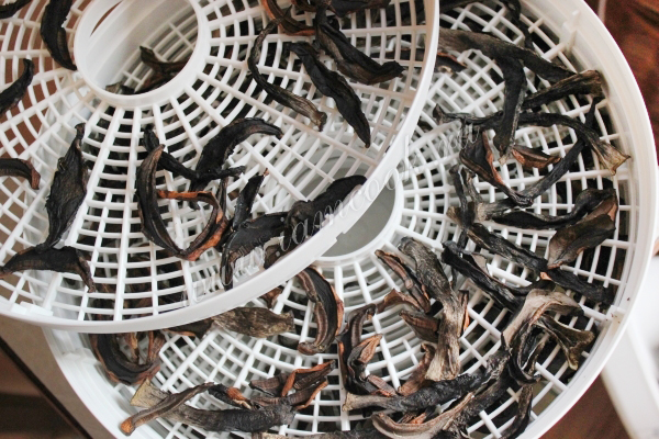 Повторите действия два раза. Грибы потемнеют, уменьшатся в размерах и будут хрупкими.