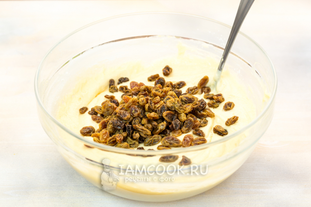 Изюм залейте кипятком, дайте постоять 10 минут, затем воду слейте, изюм обсушите.