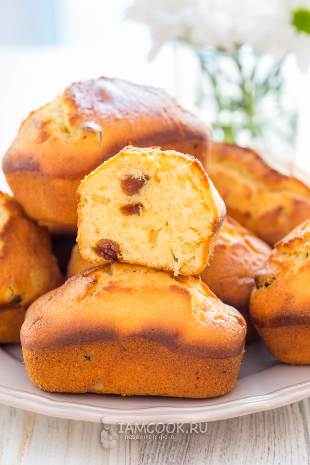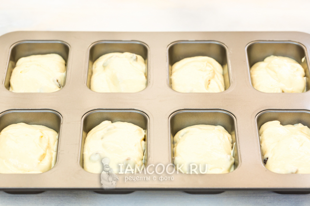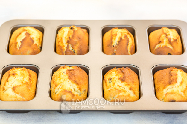 Выпекайте кексы на кефире с изюмом в формочках в разогретой до 190 градусов духовке 20-25 минут.