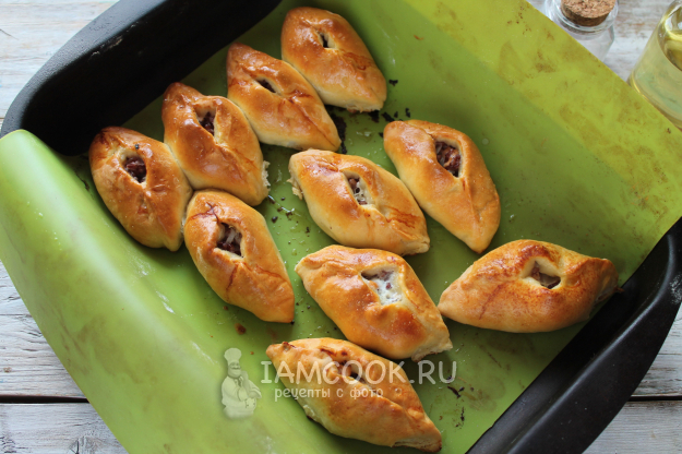 Когда выпечка поднимется и зарумянится - расстегаи из дрожжевого теста с горбушей готовы!