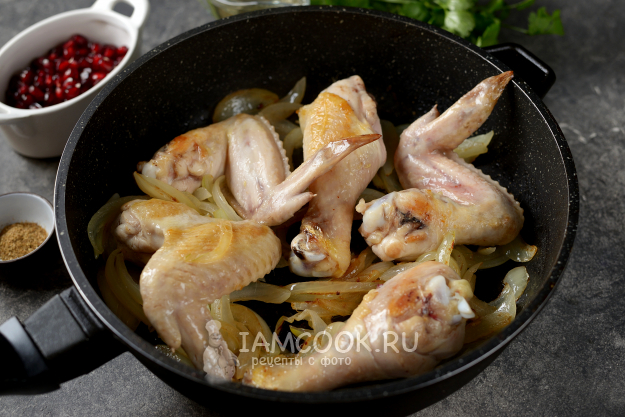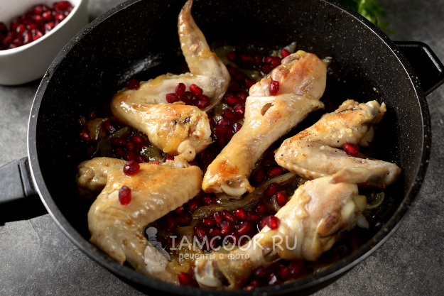 Верните курицу обратно в сковородку, тушите под крышкой на тихом огне минут 20, до полной готовности.