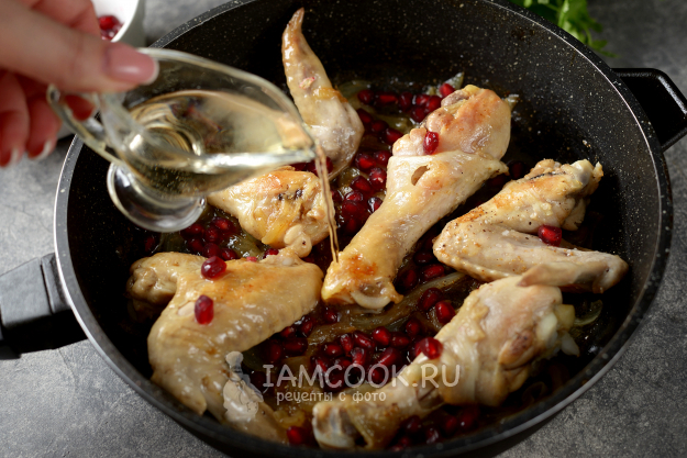 Влейте белое вино и потушите армянский хохоп из курицы еще минут 5.