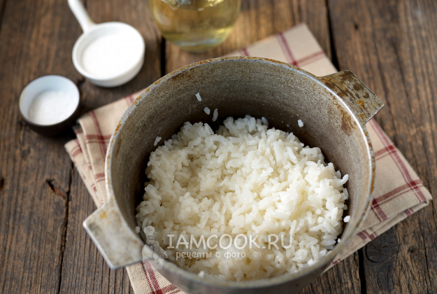 Рис промойте несколько раз, залейте холодной водой на 1 сантиметр выше крупы, доведите до кипения. Как только закипит, сделайте самый тихий огонь, накройте плотно крышкой и варите 15-17 минут. Спустя время выключите плиту, положите между крышкой и казаном бумажные полотенца, оставьте еще на 15 минут.