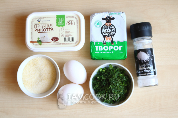 Для приготовления творожной запеканки с рикоттой возьмём следующие ингредиенты.