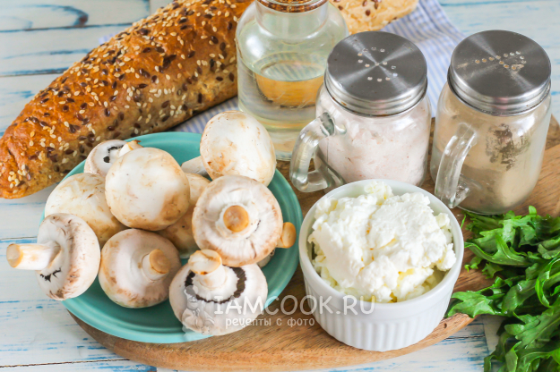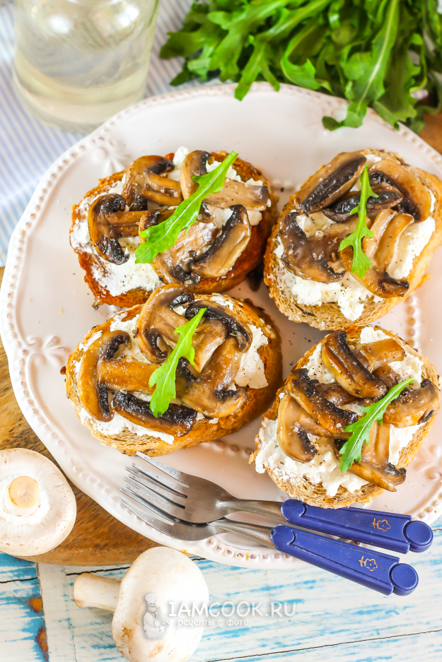 Выложите на творог обжаренные грибные слайсы.