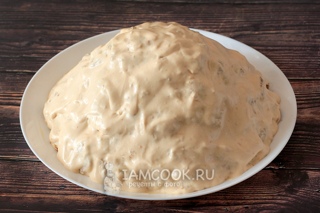 На просторное блюдо выложите нижний корж или соорудите из кусочков бисквита подобие этого коржа.
