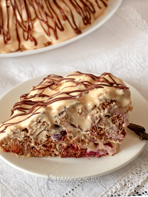 Торт «Панчо» с вишней на кофейном бисквите готов. Приятного!